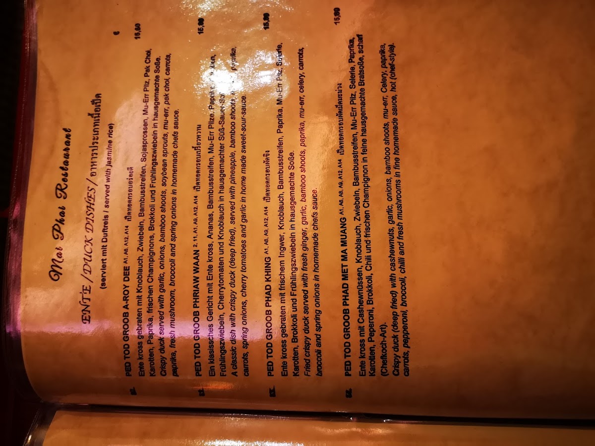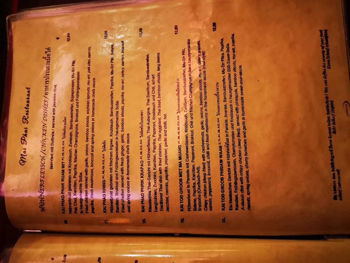 Welcome to Mai Phai, a culinary gem nestled in the heart of Berlin at Feuerbachstraße 16. This cozy Thai restaurant brings a taste of Thailand right to your neighborhood. Customers rave about the extensive menu, featuring authentic dishes that captivate the senses. You can expect delicious offerings like Pad Thai, renowned as one of the best in the area, and homemade red coconut curry, which packs a delightful heat—just right for spice lovers!